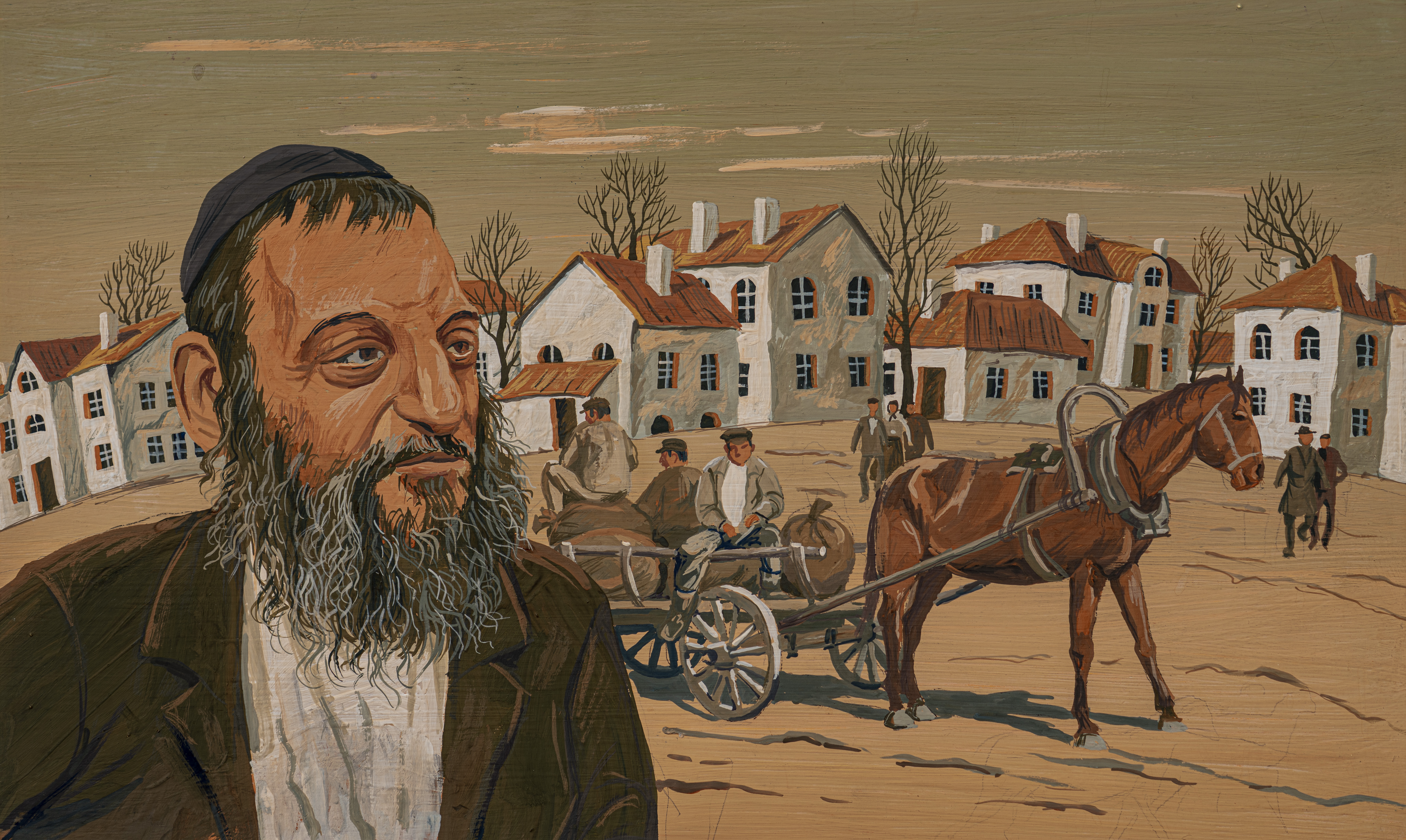 Фонды Морешет Штетл (Портрет Боруха Горина) Сюжет Изобразительное искусство Автор Цап Владислав Абрамович Период создания 2024 Материал, техника Гуашь Правообладатель Из собрания В.А. Цапа Входит в выставки Еврейское счастье. Владислав Цап