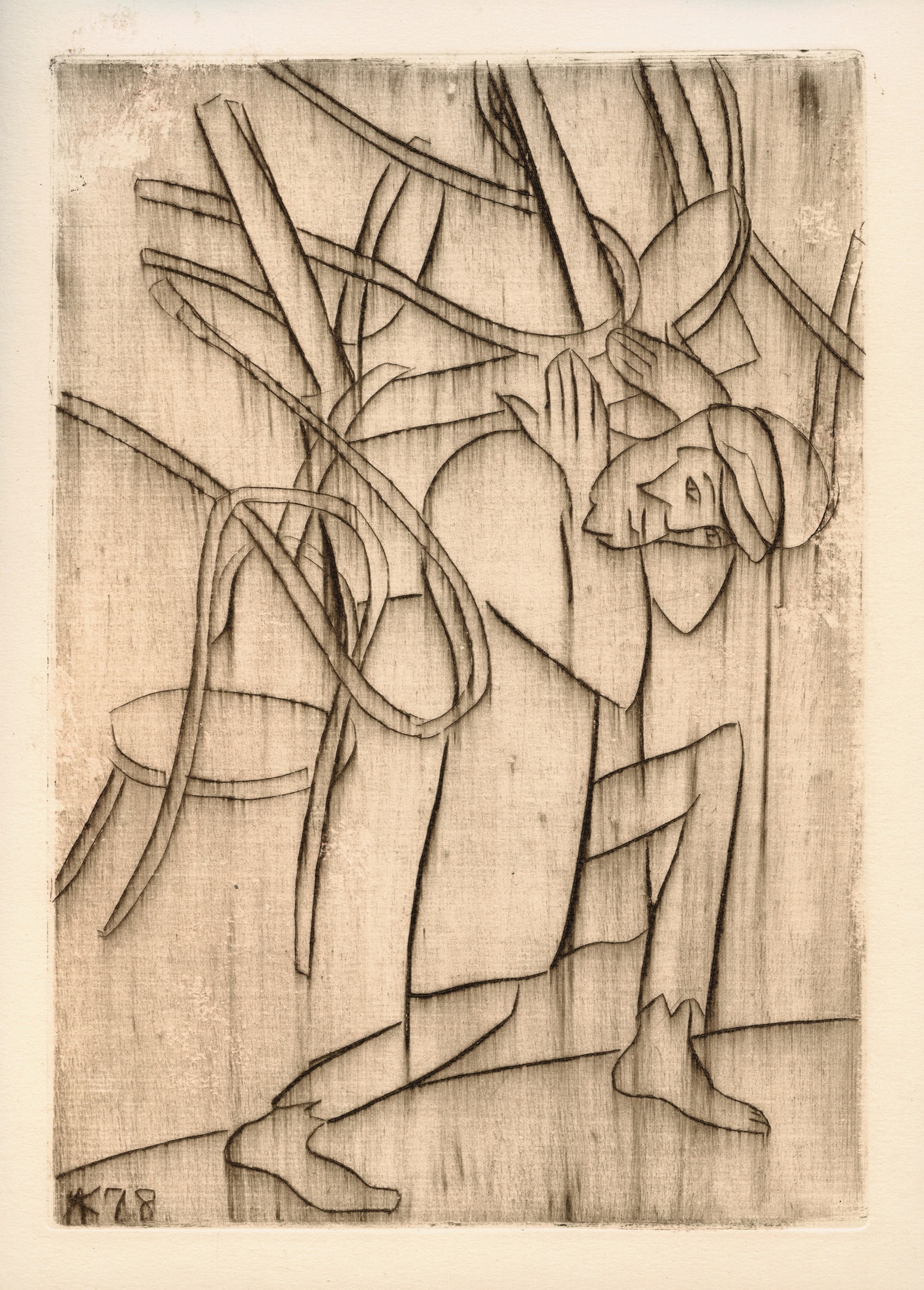 Грантовый конкурс РЕК Горбатый столяр. Из серии «Рогачев» Сюжет Изобразительное искусство, Традиция Автор Каплан Анатолий Период создания 1978 Материал, техника Игла сухая Размеры 45 × 35 Правообладатель Ассоциация исследователей еврейской культуры «Петербургская иудаика»