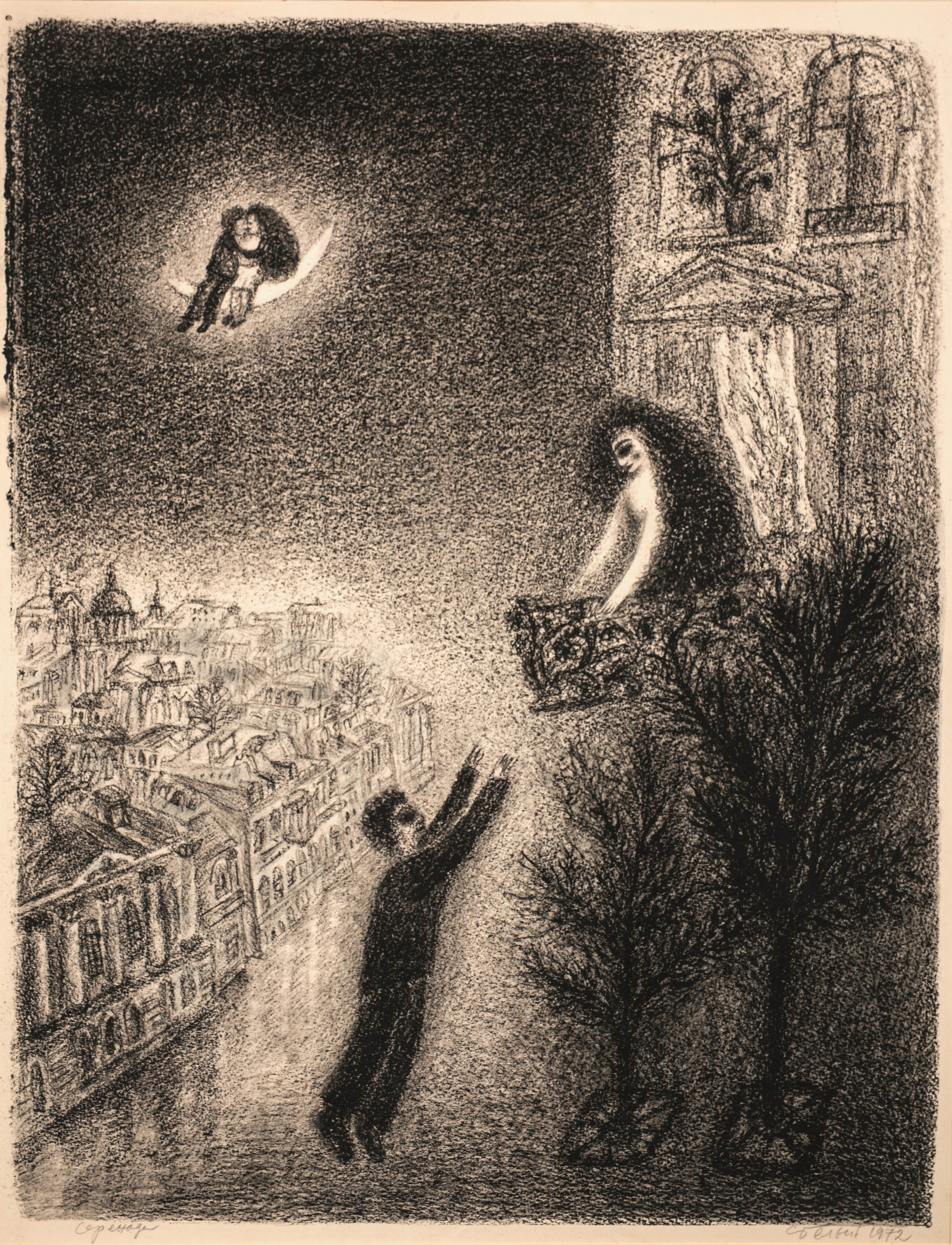 Фонды Морешет Серенада Сюжет Изобразительное искусство, Традиция, Идентичность Автор Белый Семен Период создания 1972 Материал, техника Литография Размеры 64 × 50 Правообладатель Частное собрание, Санкт-Петербург Входит в выставки Местечко на Фонтанке. От Шагала до современности