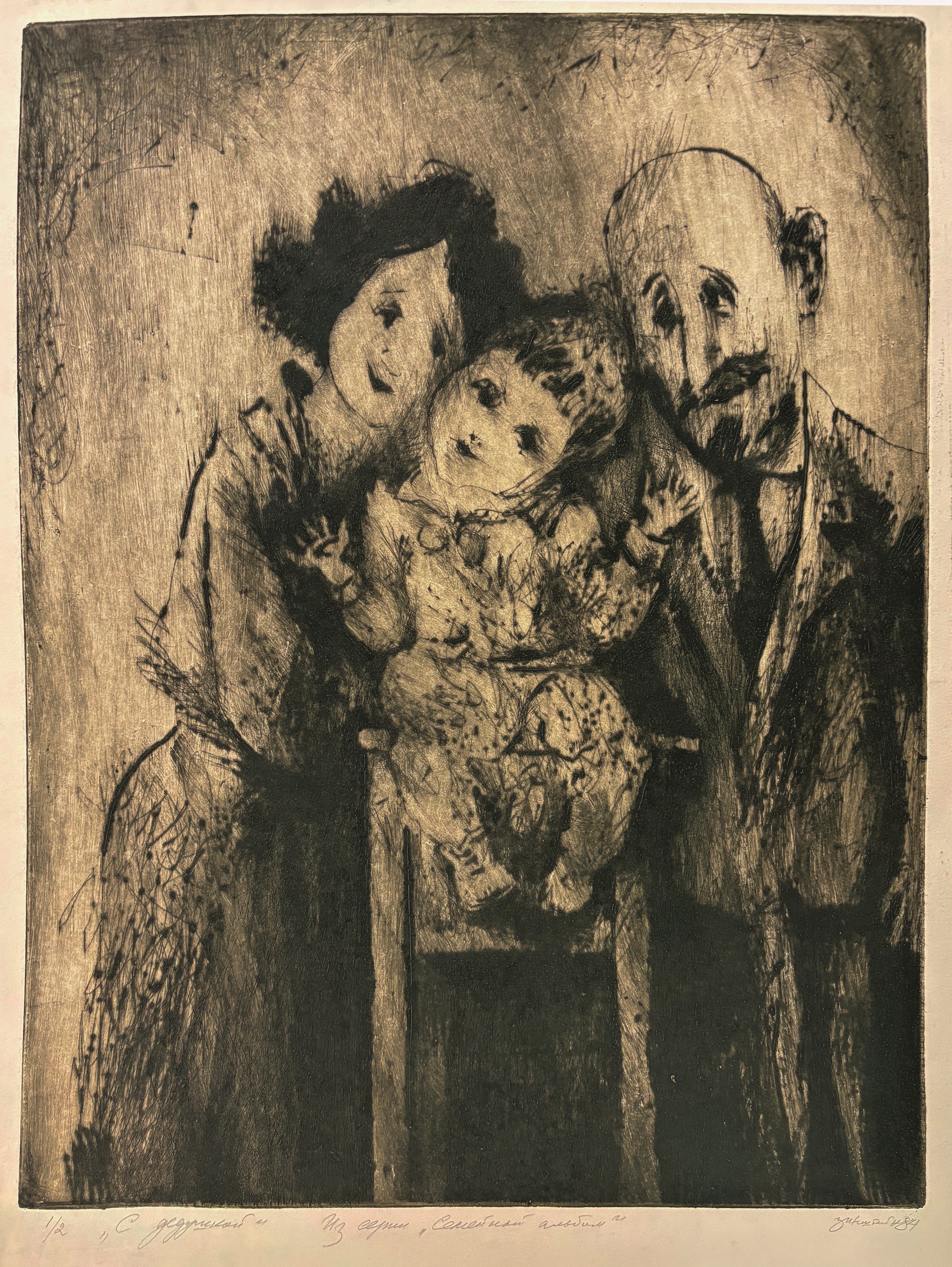 Фонды Морешет С дедушкой (Из серии «Семейный альбом») Сюжет Изобразительное искусство, Традиция, Идентичность Автор Зинштейн Арон Иосифович Период создания 1984 Материал, техника Игла сухая Размеры 60,8 × 45,4 Правообладатель Собрание художника Входит в выставки Местечко на Фонтанке. От Шагала до современности