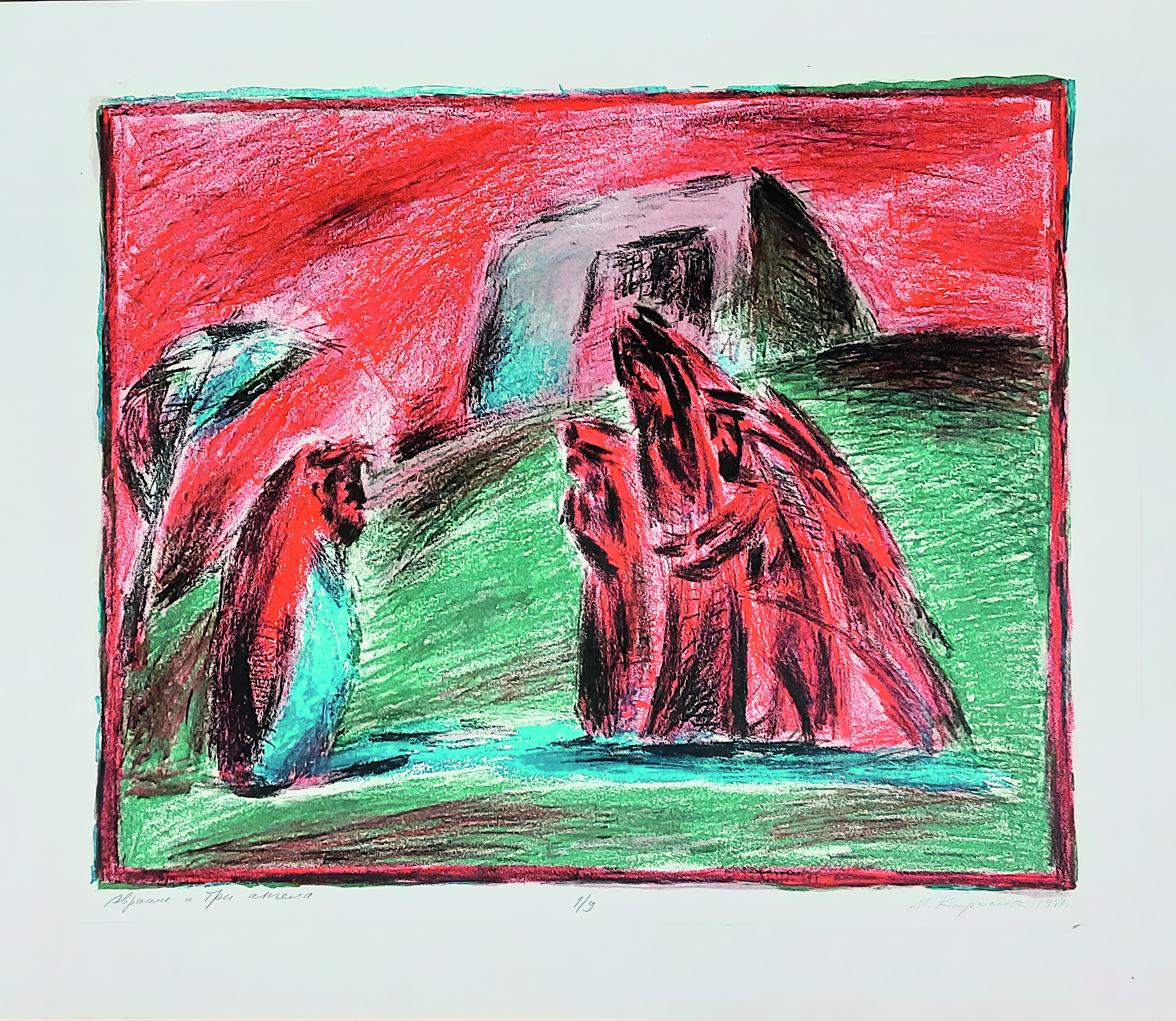 Фонды Морешет Авраам и три ангела Сюжет Изобразительное искусство, Традиция, Идентичность Автор Карасик Михаил Период создания 1987 Материал, техника Литография Размеры 39,5 × 47,5 Правообладатель Собрание семьи художника, Санкт-Петербург Входит в выставки Местечко на Фонтанке. От Шагала до современности