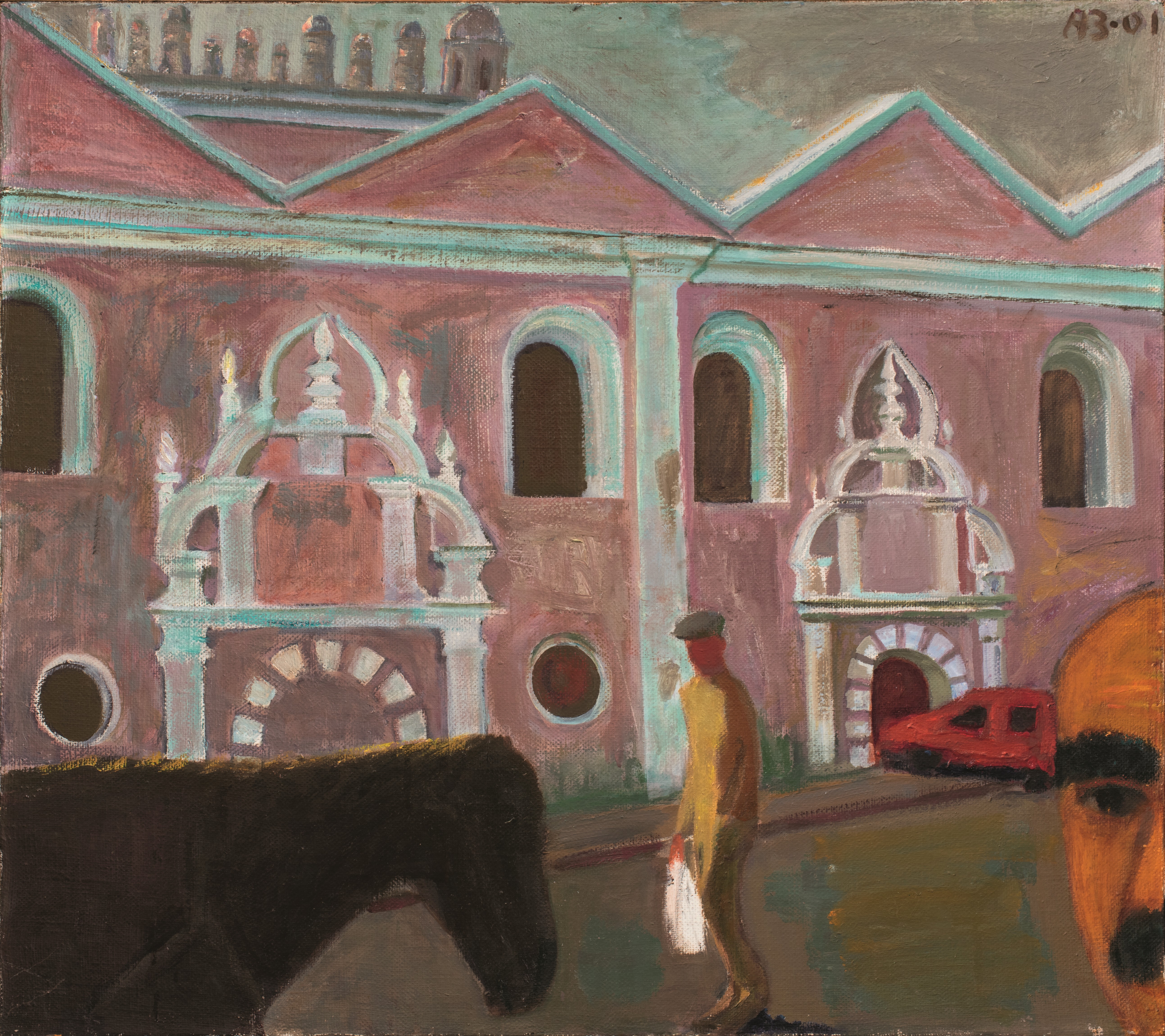 Портрет художника Феликса Лейбовича на фоне синагоги в Жолкве