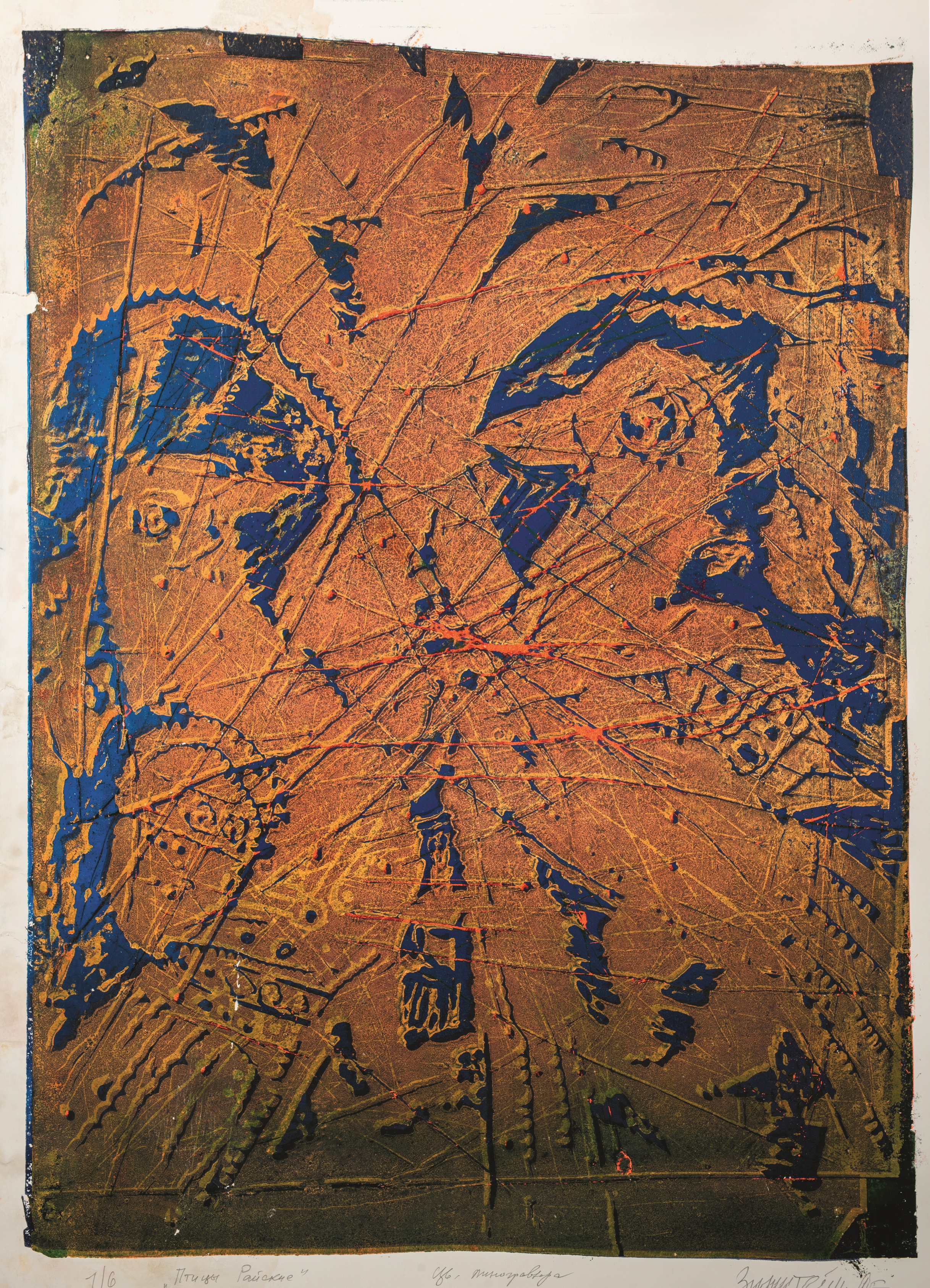Фонды Морешет Птицы райские Сюжет Изобразительное искусство, Традиция, Идентичность Автор Зинштейн Арон Иосифович Период создания 1990 Материал, техника Линогравюра Размеры 86 × 64 Правообладатель Ассоциация исследователей еврейской культуры «Петербургская иудаика» Входит в выставки Местечко на Фонтанке. От Шагала до современности