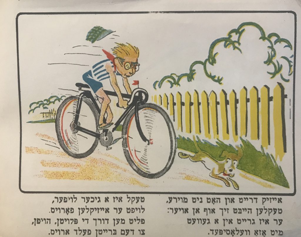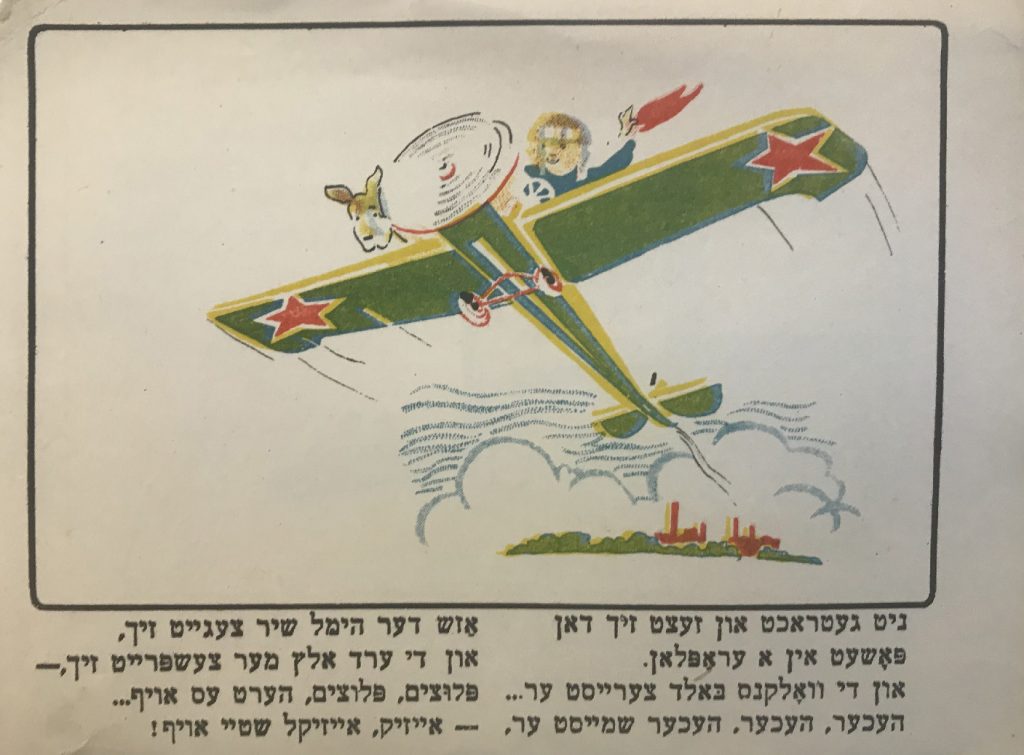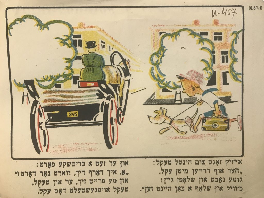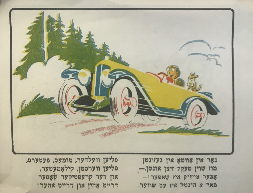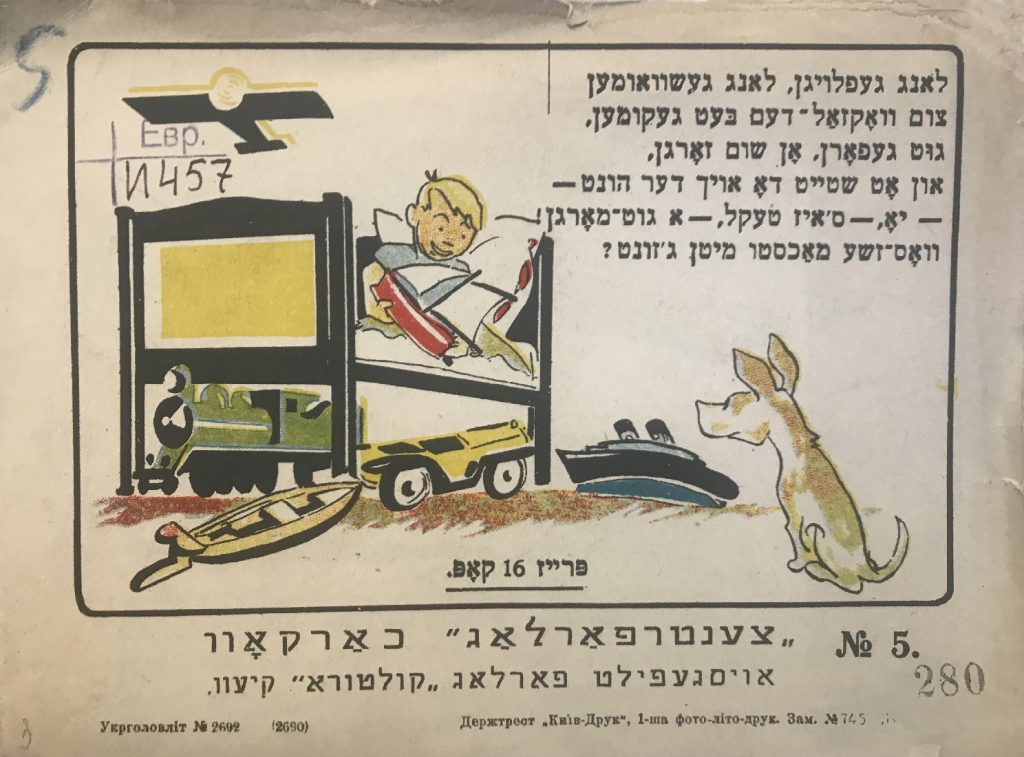 Выходные данные: Квитко Л. Айзикл аф дер райзе (Айзик в путешествии). Художник Р. Черняк. Харьков — Киев: Центрфарлаг – Культура, 1928
