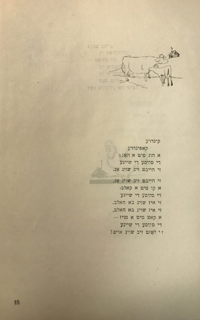 Выходные данные: Квитко Л. Фар ди киндерсвегн (Для детей). Художник А. Короткин. М.: Эмес, 1933
