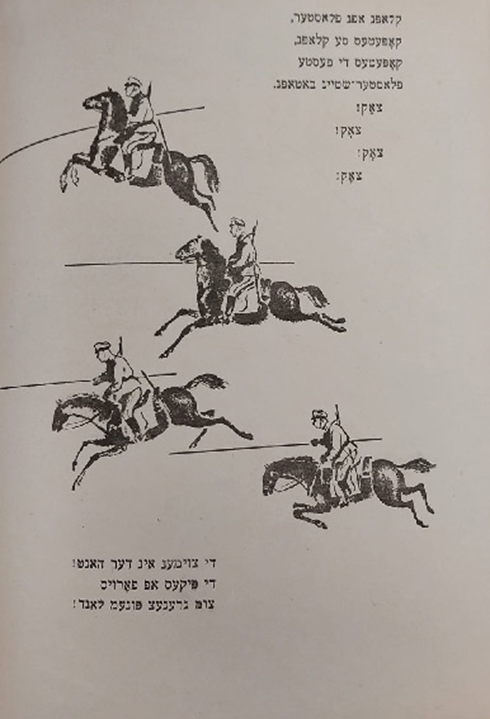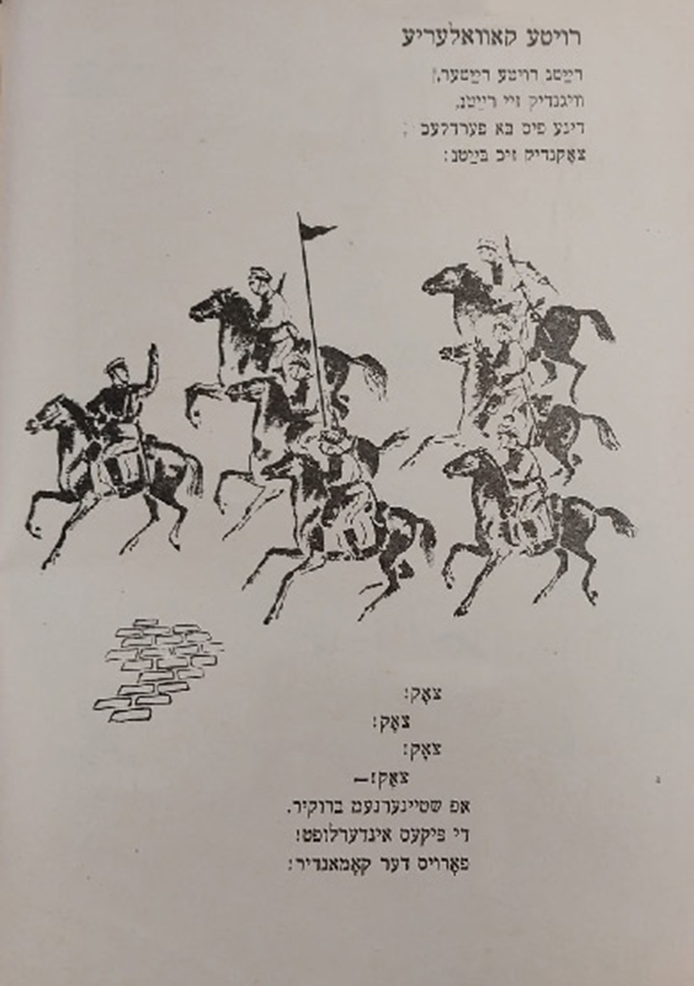 Выходные данные: Квитко Л. Ройте райтер (Красные всадники). Художник А. Каганер. Киев: Госнацмениздат УССР, 1936