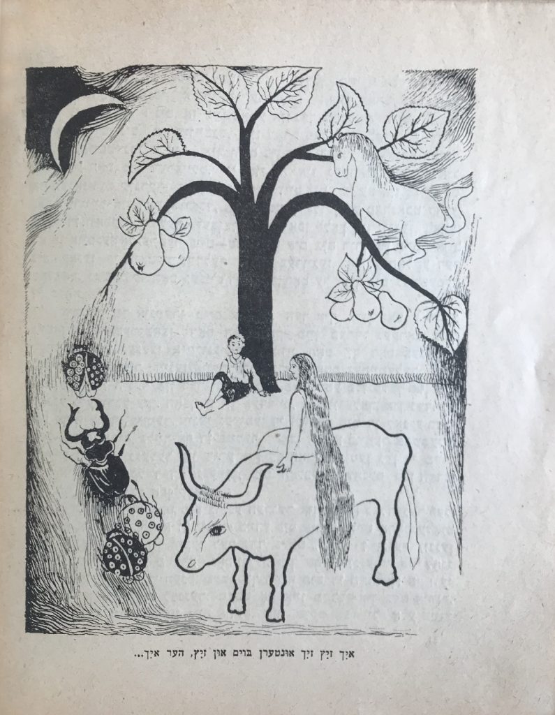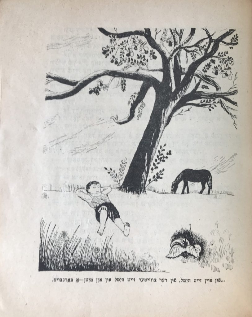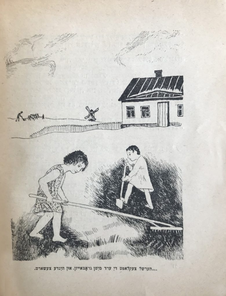 В книгу входят такие произведения, как «Арум шул (Возле школы)», «Татеши, татеши (Батюшка, батюшка)», «А майселе (Сказка)», «А гортн бешутфес (Огород на двоих)», «Ди шпенер (Щепки)», «Рейне ди юнге (Рейна молодая)», «Оксн (Быки)».
