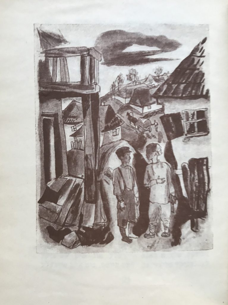 Выходные данные: Кипнис И. Хореве нестн (Разоренные гнезда). Художник Б.И. Крюков. Киев-Харьков: Госнацмениздат УССР, 1933