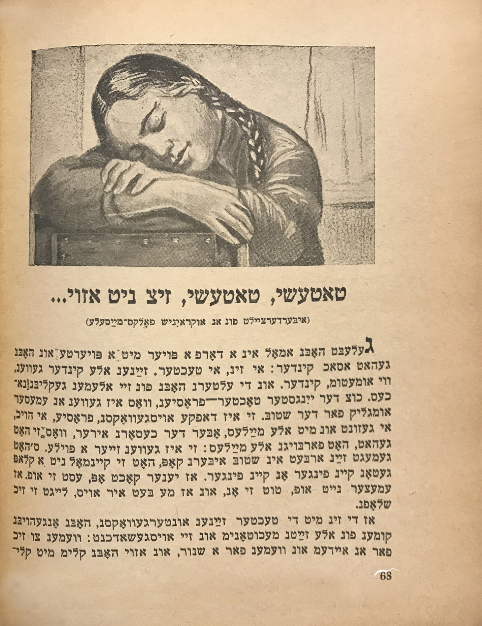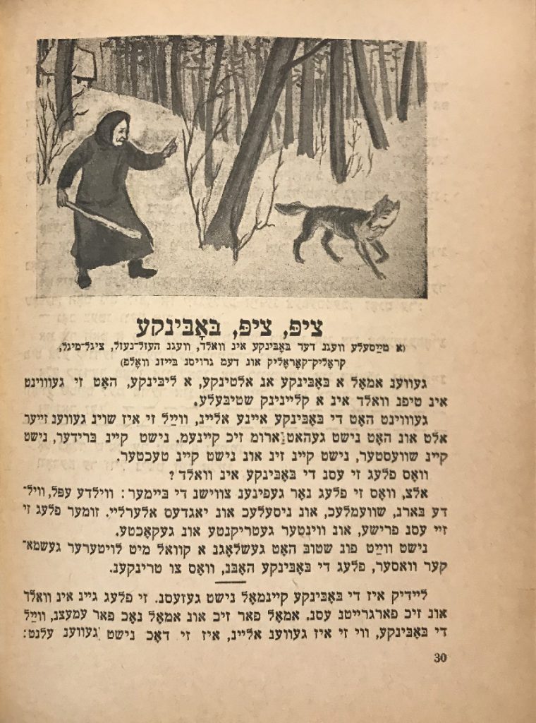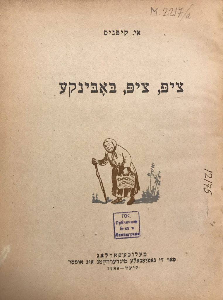 Выходные данные: Кипнис И. Цип, цип, бобинке (Цып-цып, бабушка). Художник М. Ройтман. Киев: Госнацмениздат Украины, 1938