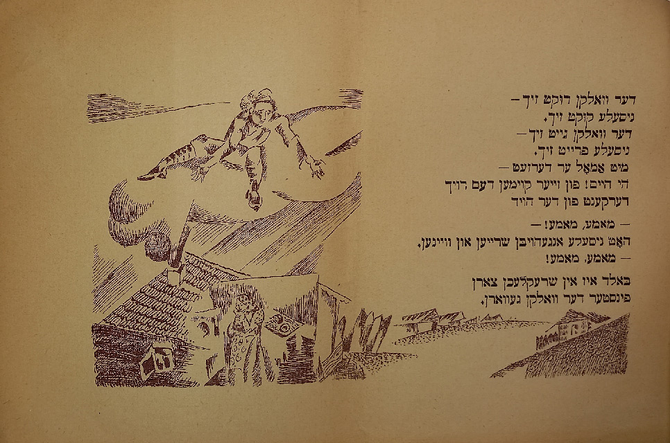 Фонды Морешет Ноях Лурье. На одной ножке Выходные данные: Ноях Лурье. Аф эйн фиселе (На одной ножке). Художник И. Чайков. Киев: Культур-Лиге, 1922 Автор Чайков Иосиф Период создания 1922 Правообладатель Российская национальная библиотека, Санкт-Петербург, Ассоциация исследователей еврейской культуры «Петербургская иудаика» Входит в выставки Еврейская иллюстрированная книга в СССР. 1920-30-е годы