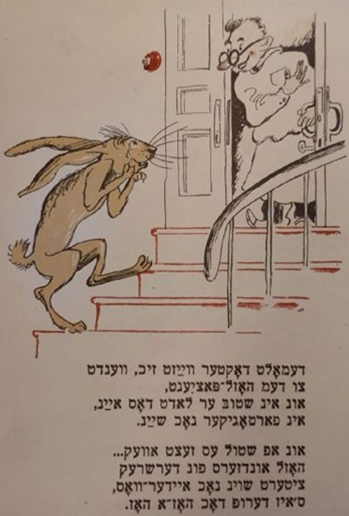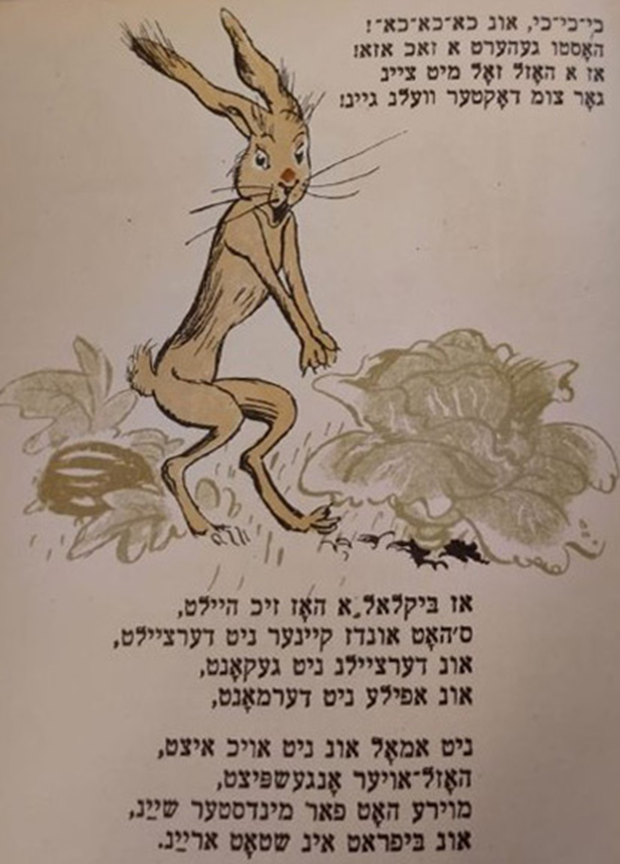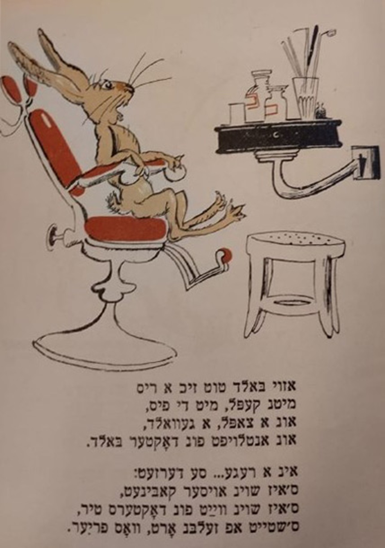Фонды Морешет Дер Нистер. Болят у зайки зубы Выходные данные: Дер Нистер. Болят у зайки зубы. Художник Б. Фридкин. Одесса: Детиздат ЦК ЛКСМУ, 1935 Автор Фридкин Борис Период создания 1935 Правообладатель Российская национальная библиотека, Санкт-Петербург, Ассоциация исследователей еврейской культуры «Петербургская иудаика» Входит в выставки Еврейская иллюстрированная книга в СССР. 1920-30-е годы Ссылка Страница на сайте «Петербургской иудаики»