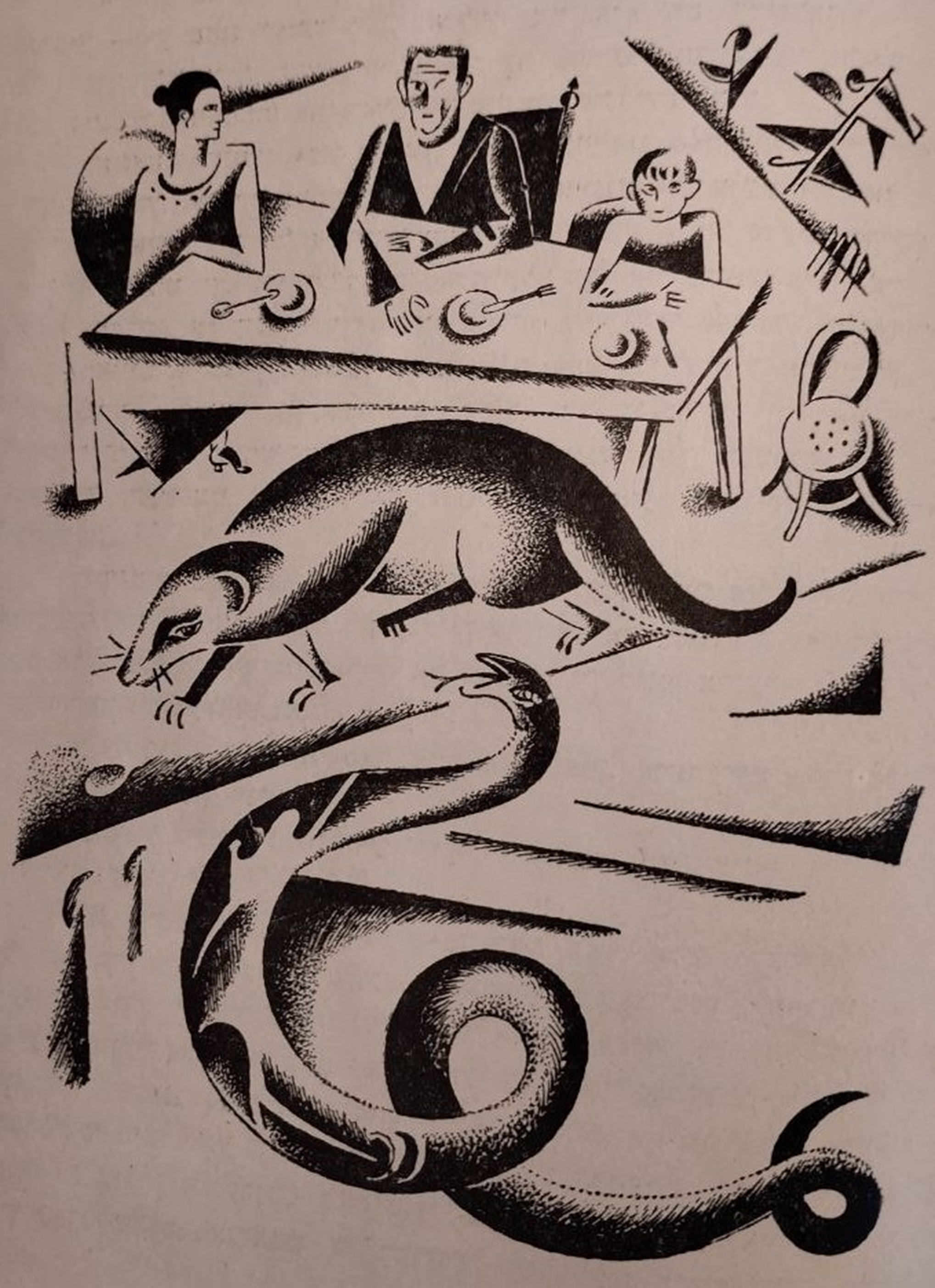 Фонды Морешет Редьярд Киплинг. Рикки-Тикки-Тави Выходные данные: Р. Киплинг. Рикки-Тикки-Тави. Художник Марк Эпштейн. Киев: Культур-Лиге, 1924 Описание Перевод — Хаим Люмкис. Автор Эпштейн Марк Период создания 1924 Правообладатель Российская национальная библиотека, Санкт-Петербург, Ассоциация исследователей еврейской культуры «Петербургская иудаика» Входит в выставки Еврейская иллюстрированная книга в СССР. 1920-30-е годы