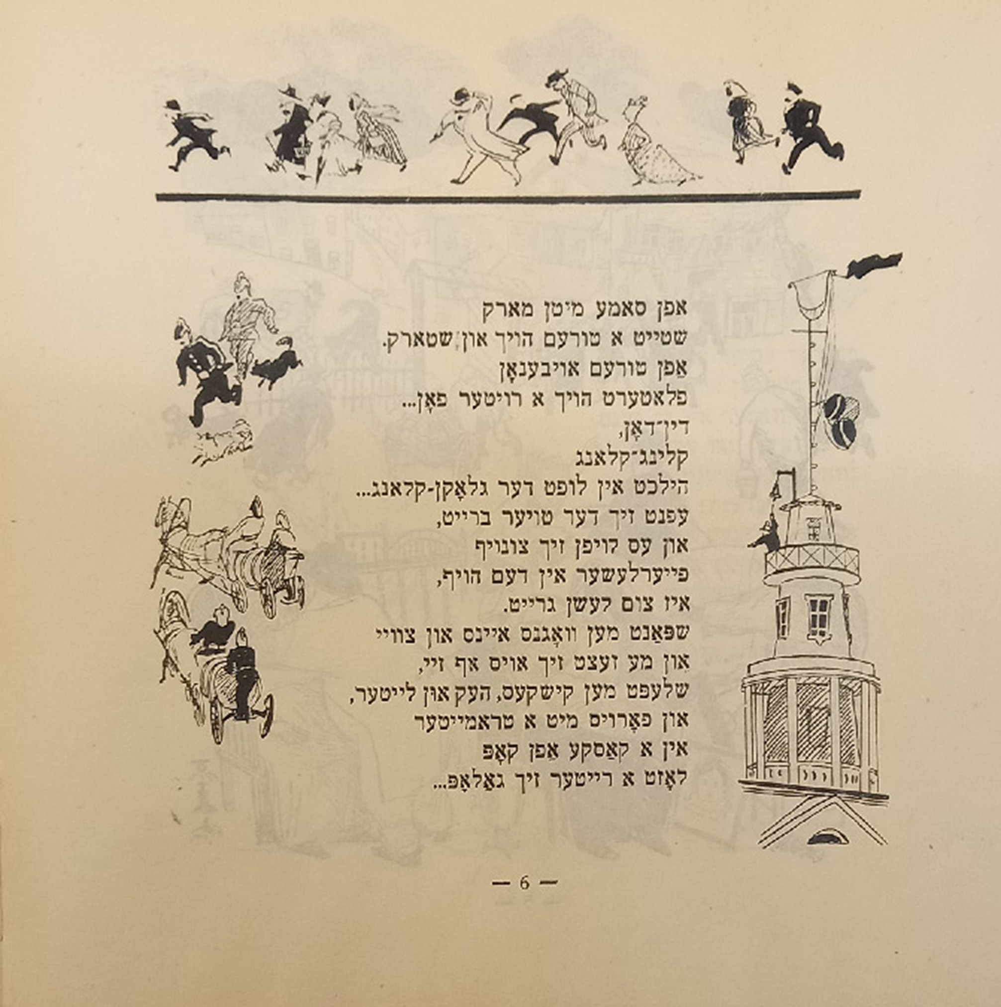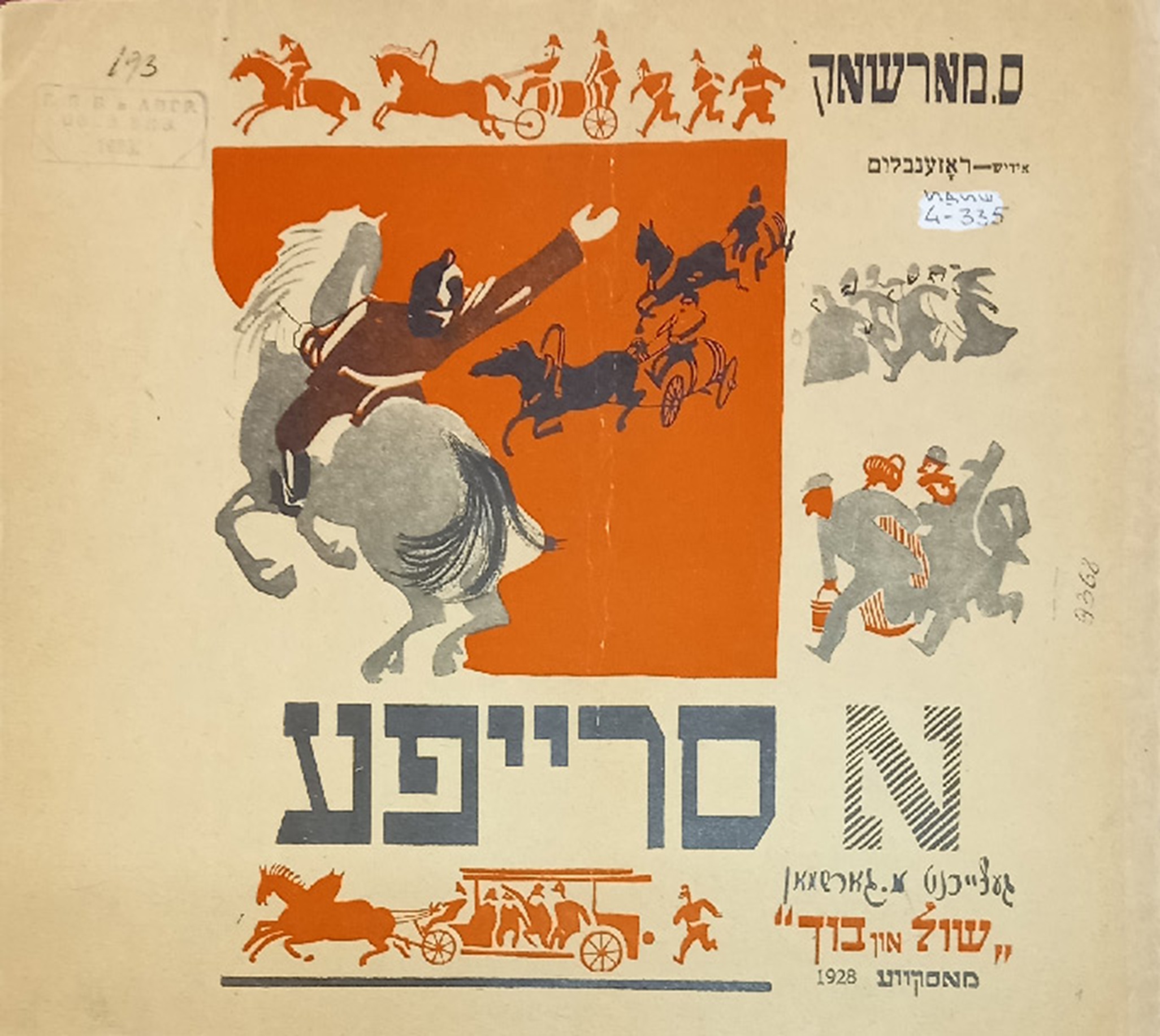 Фонды Морешет Самуил Маршак. Пожар Выходные данные: С. Маршак. А срейфе (Пожар). Художник Мендл Горшман. Москва: Шул ун бух, 1928 Описание Перевод — Розенблюм. Автор Горшман Мендл Период создания 1928 Правообладатель Российская национальная библиотека, Санкт-Петербург, Ассоциация исследователей еврейской культуры «Петербургская иудаика» Входит в выставки Еврейская иллюстрированная книга в СССР. 1920-30-е годы