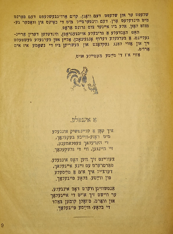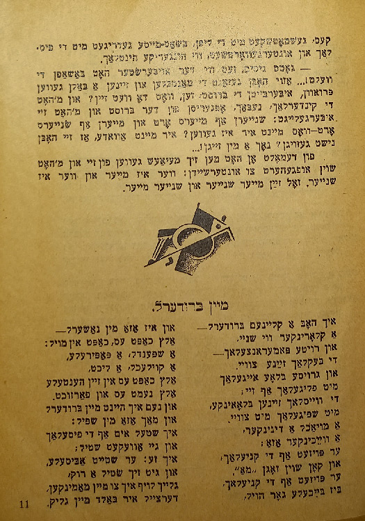 Выходные данные: Идиш. Литературный сборник для школы и дома. Составил Э. Спивак. Киев: Культур-Лиге, 1923