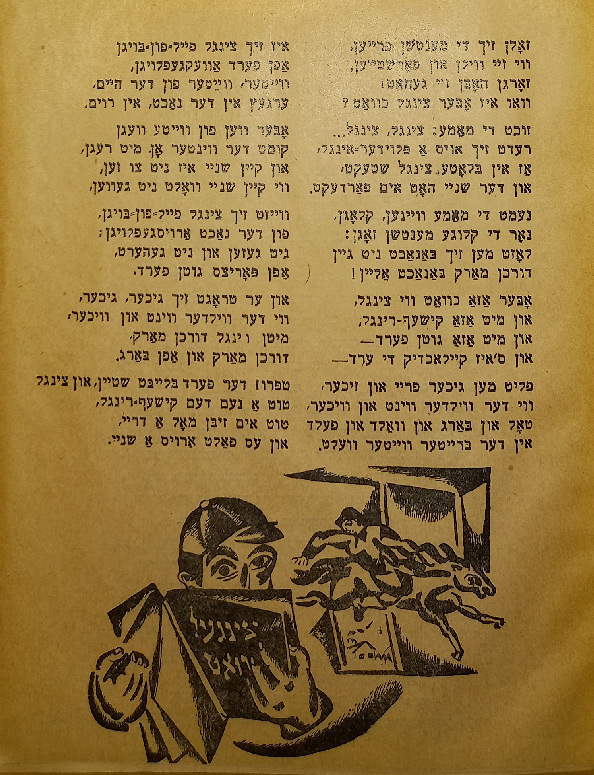 Выходные данные: Идиш. Литературный сборник для школы и дома. Составил Э. Спивак. Киев: Культур-Лиге, 1923
