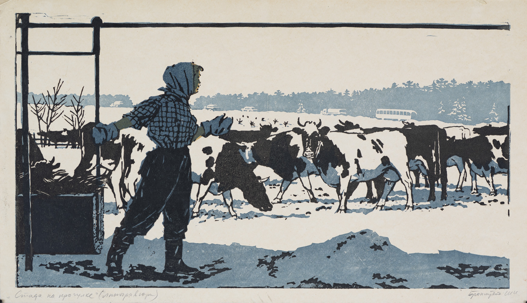 Фонды Морешет Стада на зимней прогулке Автор Бронштейн Шая Иосифович Период создания 1958-1960 Материал, техника Бумага, Линогравюра Правообладатель Дальневосточный художественный музей, Хабаровск Входит в выставки От авангарда до наших дней